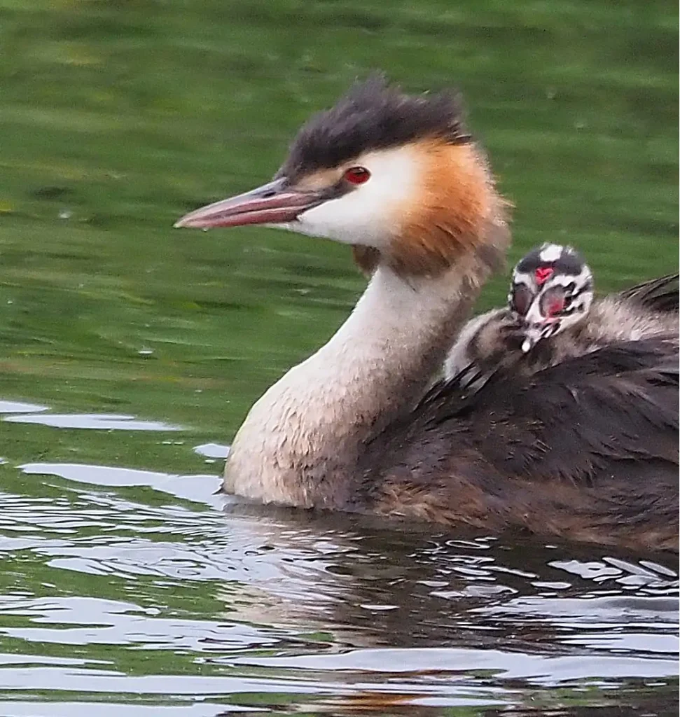 De fuut heeft al lang een speciale plaats in mijn hart verovert. Haar totale toegewijde ouderschap is iconisch te noemen. Het begint al vroeg in het jaar, midden in de winter, met het vormen van paren. De spanning wordt opgevoerd met een betoverende baltsdans waarbij beide seksen elkaar uitdagen, synchroon met hun kop schudden en sierlijk knikken. Wanneer het verbond is gesloten, gaan ze over tot het bouwen van het nest. Het mannetje slooft zich helemaal uit om goed in de gratie te komen. Maandenlang genieten de jongen van liefdevolle zorg, tot ze uiteindelijk zelfstandig hun kostje, vissen, zelf kunnen vangen. De Fuut is niet alleen een prachtige vogel om te zien, maar ook een bron van eindeloze verwondering en bewondering. En dat rood hartje op hun voorhoofd? Dat maakt het